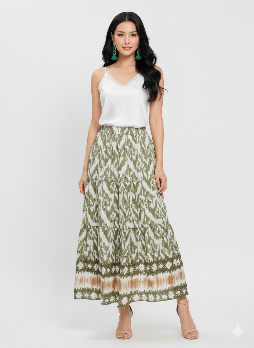 Falda Larga Constanza Estampado de Mariposas con Brillos Sutiles