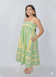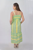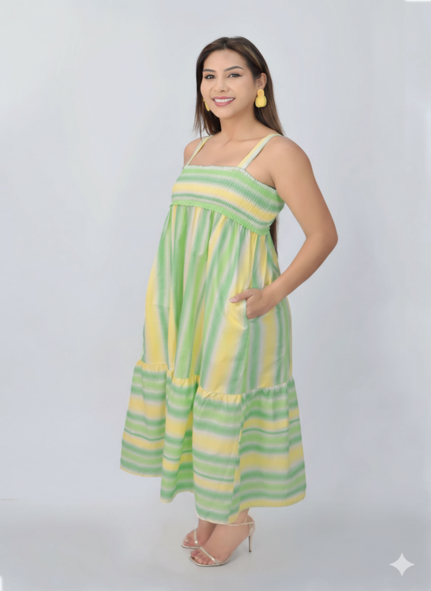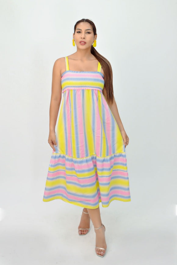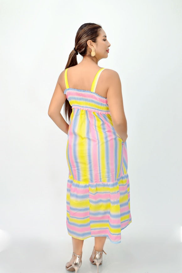 Vestido Largo Luciana – Estampado de Rayas Multicolor con Cuerpo Elástico